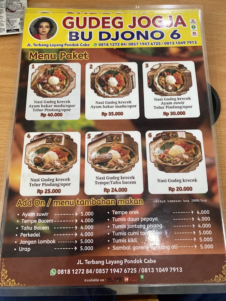 Gudeg Jogja Bu Djono is a true culinary gem for lovers of authentic Javanese cuisine. Nestled in Tangerang Selatan, this restaurant specializes in gudeg kering — a drier, less sweet version of the traditional Yogyakarta style gudeg that perfectly balances flavors without overwhelming the palate. The menu boasts well-crafted dishes like tender ayam suwir, flavorful krecek (spicy beef skin), and an enticing variety of traditional sides including oseng cumi, botok, garang asem, and pepes tahu. Each plate is a comforting homage to Javanese home cooking, with fresh ingredients and balanced seasoning.